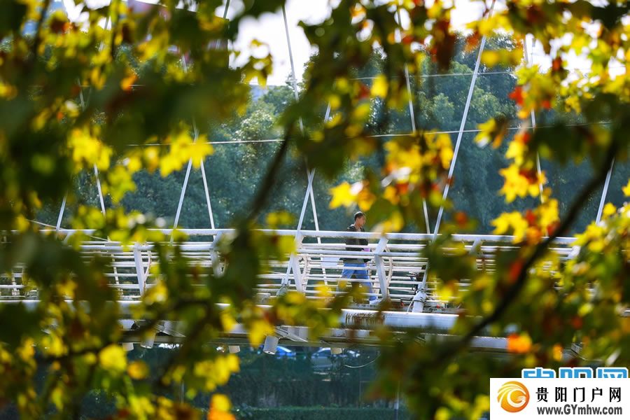 连日来,贵阳晴朗的好天气不仅为贵阳市民带来好心情,同时也为市民带来令人惊艳的秋色好风景。在河滨公园,南明河沿岸的梧桐树叶在阳光的照射下显得特别的金黄而成为河滨公园版的“黄金大道”,不少市民被深深吸引,纷纷前往打卡拍照。此外,公园里部分变黄的银杏树叶,阳光照射下显得更为通红的枫叶等各种各色树叶混杂一起,使得公园里随处都是一幅色彩斑斓浓郁的油画,看得人赏心悦目,流连忘返。